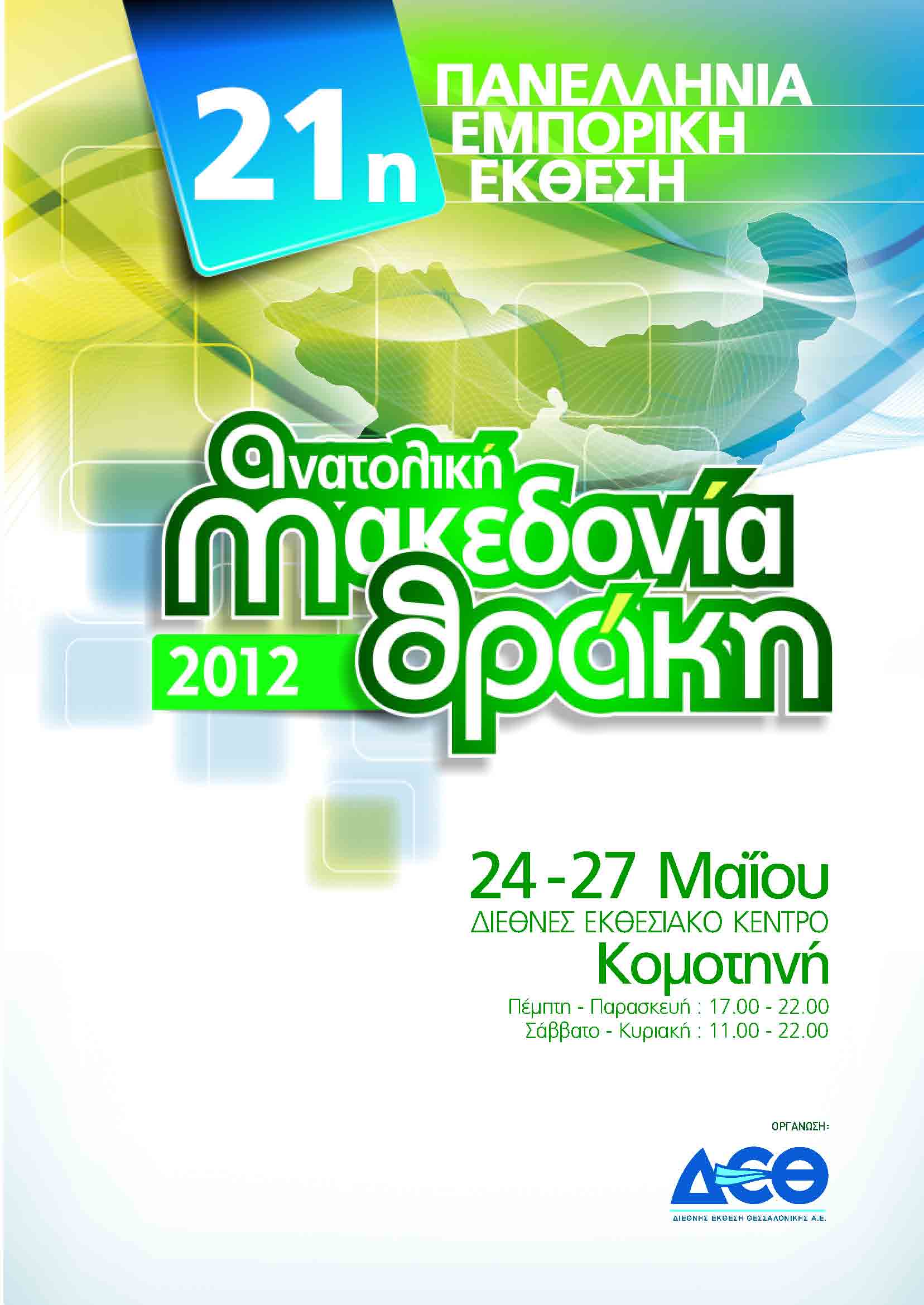 Η Ενδιάμεση Διαχειριστική Αρχή Περιφέρειας Ανατολικής Μακεδονίας και Θράκης θα μετέχει στη 21η πανελλήνια εμπορική έκθεση «Ανατολική Μακεδονία Θράκη» που διοργανώνει η ΔΕΘ ΑΕ, στο Διεθνές Εκθεσιακό Κέντρο ΑΜΘ στις εγκαταστάσεις της ΒΙΠΕ Κομοτηνής, από τις 24 έως 27 Μαϊου 2012.